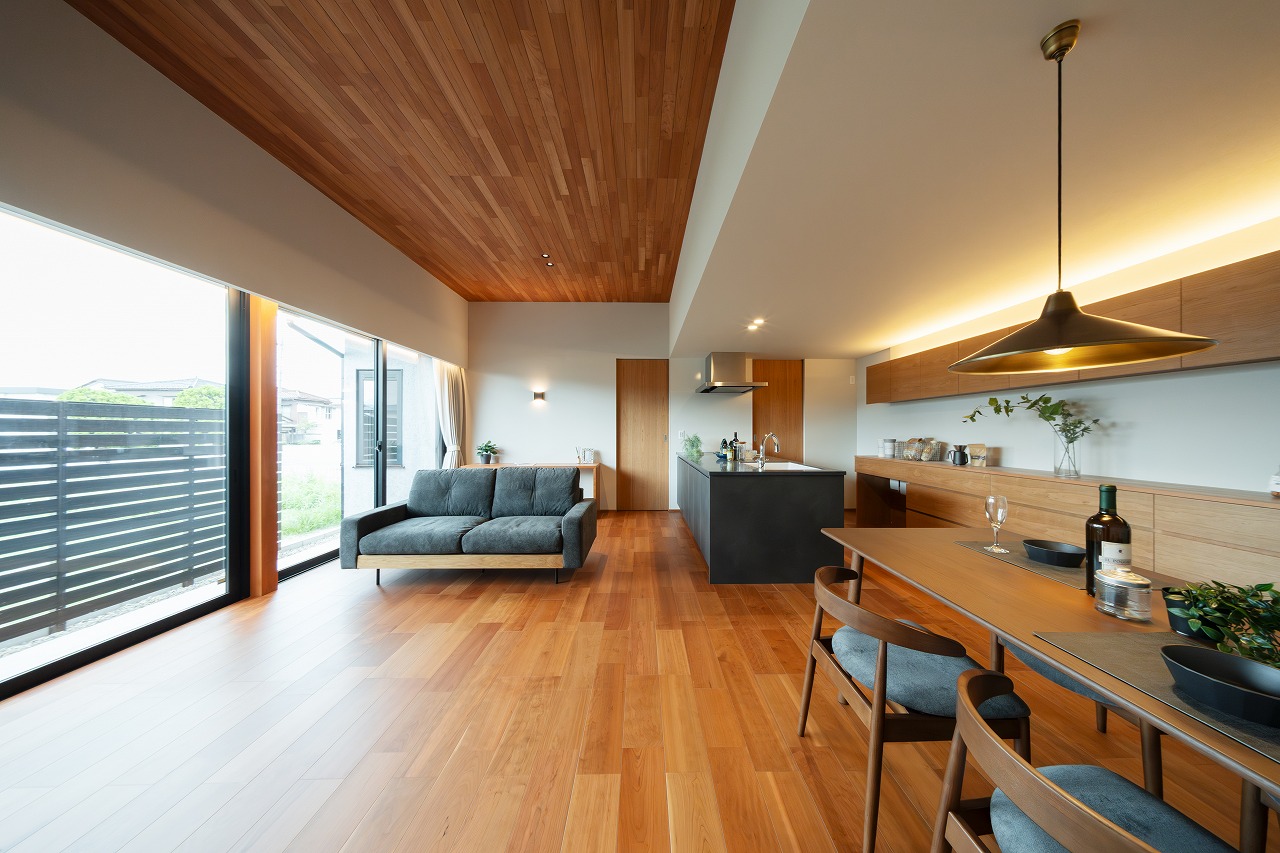 南北にある2つの庭を繋ぐ、落ち着きを感じるLDK。