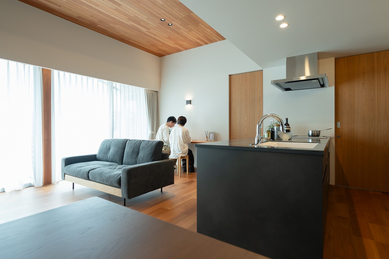 LDKの一角に設けたカウンターは、誰もが使えるスペース。