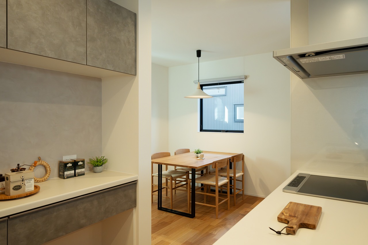 キッチンとダイニングを横並びにし、配膳も片付けもスムーズに。