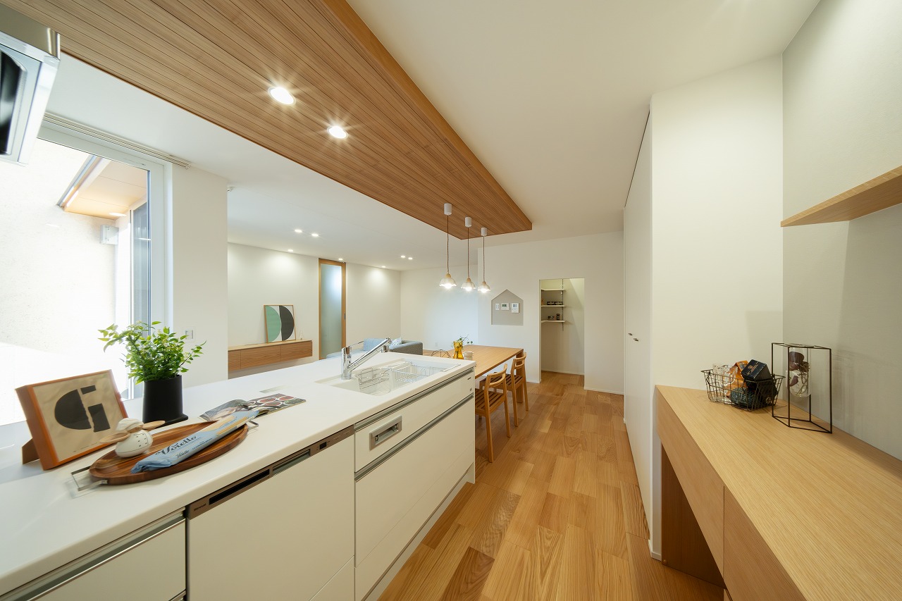 リビング・ダイニング・水まわり、どの空間にもアクセスしやすく、料理をしながら家族の様子を見守れる安心の間取り。