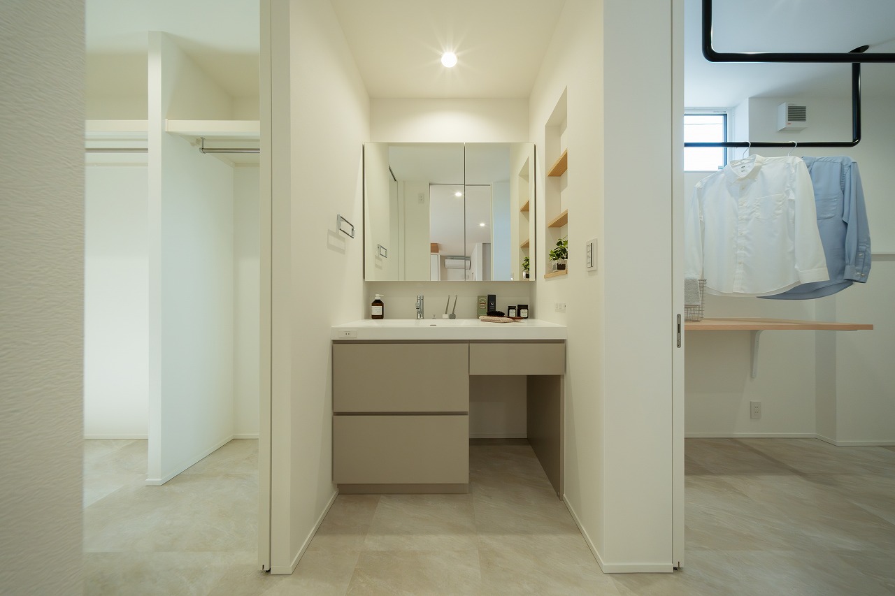 さらに、干場・洗面・ウォークインクローゼットを一直線に配置することで、