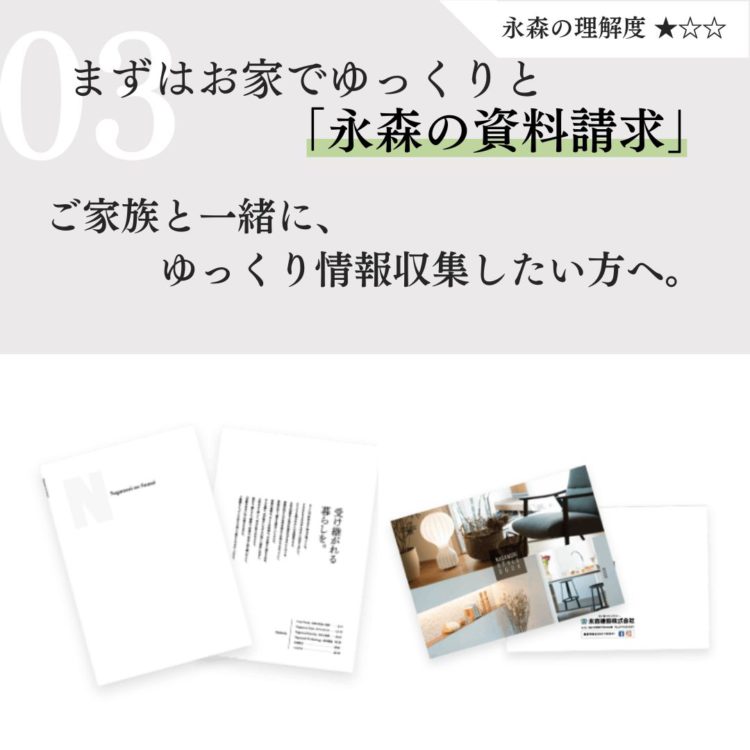 施工事例や家づくりの考え方をまとめた資料をお届けします。見学前の予習や、家族会議のきっかけに。