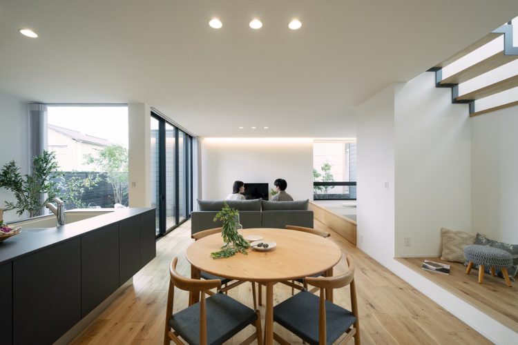 家族の顔が見える広々LDK+大開口の窓で明るい空間。