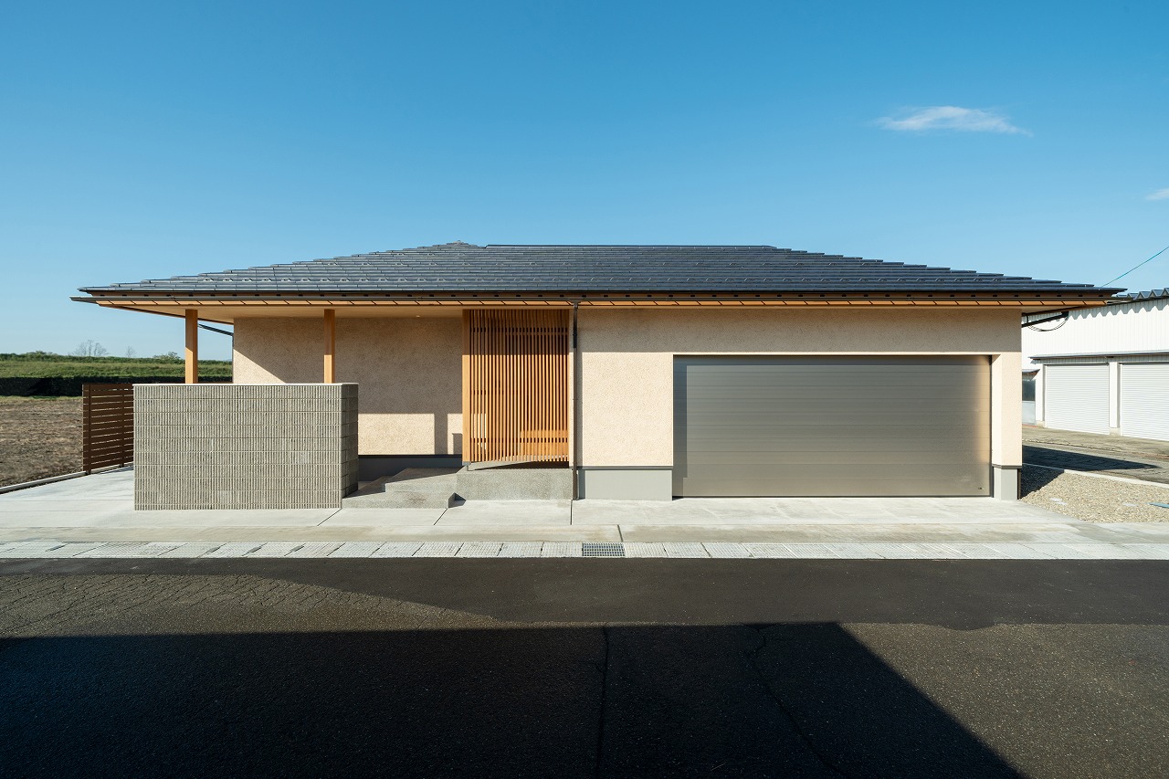 今も将来も見据えて、快適で住みやすい平屋を希望されました。木の雰囲気が好きということで、木のぬくもりを感じる心地の良い空間に。豊かな田園風景を切り取り、外とのつながりを感じながら暮らせるお住まいです。