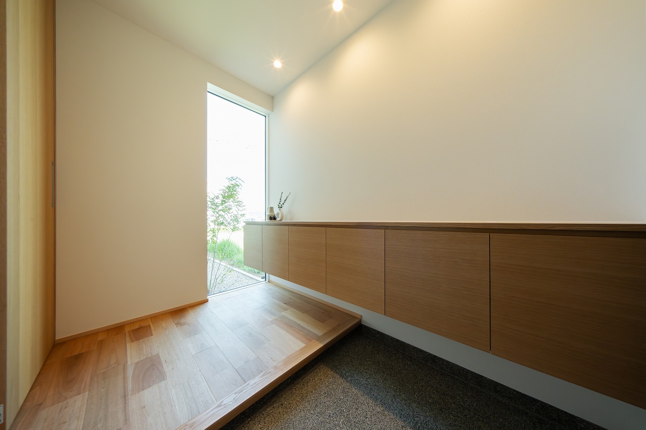 窓から差し込む木漏れ日は、一日の始まりを告げ、 夕暮れ時は帰宅を温かく迎えてくれる玄関です。
